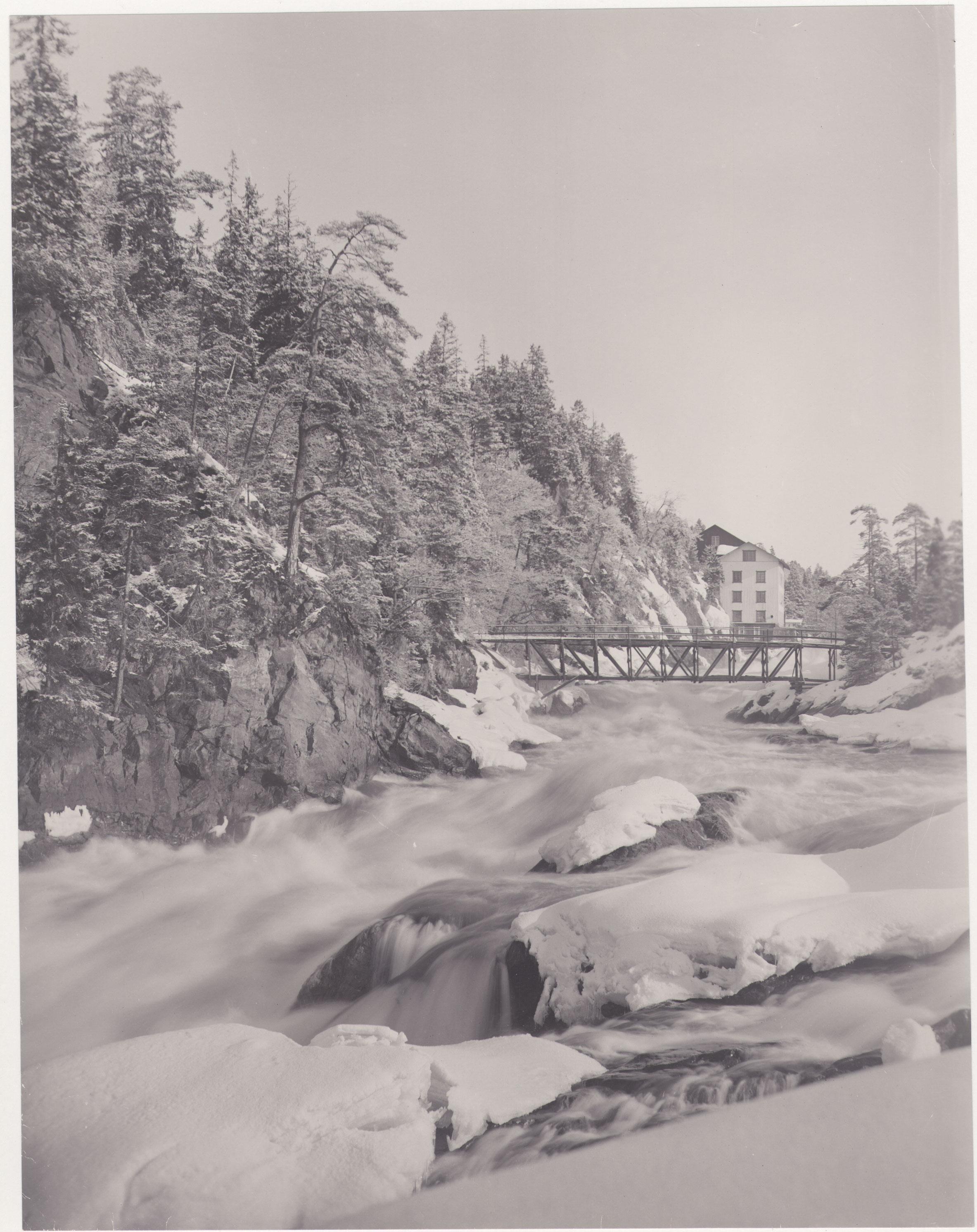Trollhättefallen och området mellan Ekeblads sluss och Polhems sluss. Bilden troligen tagen från Toppön.