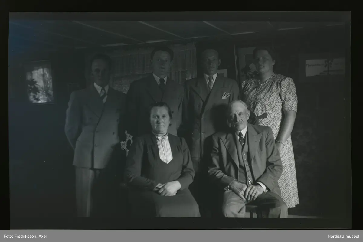 Julia och Emanuel Karlsson poserar sittandes med familjemedlemmar stående bakom dem.