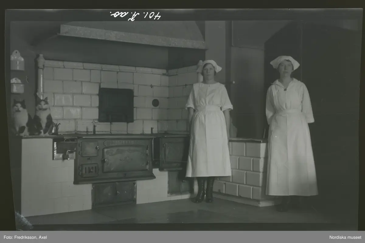 "Fröken Tamms kök, Lydia Andersson, Emy Karlsson, katterna Kalle och Olle."