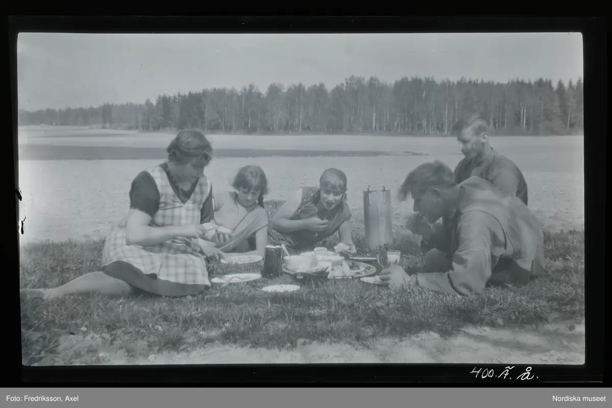 Ett sällskap har dukat upp en picnic i vägkanten.