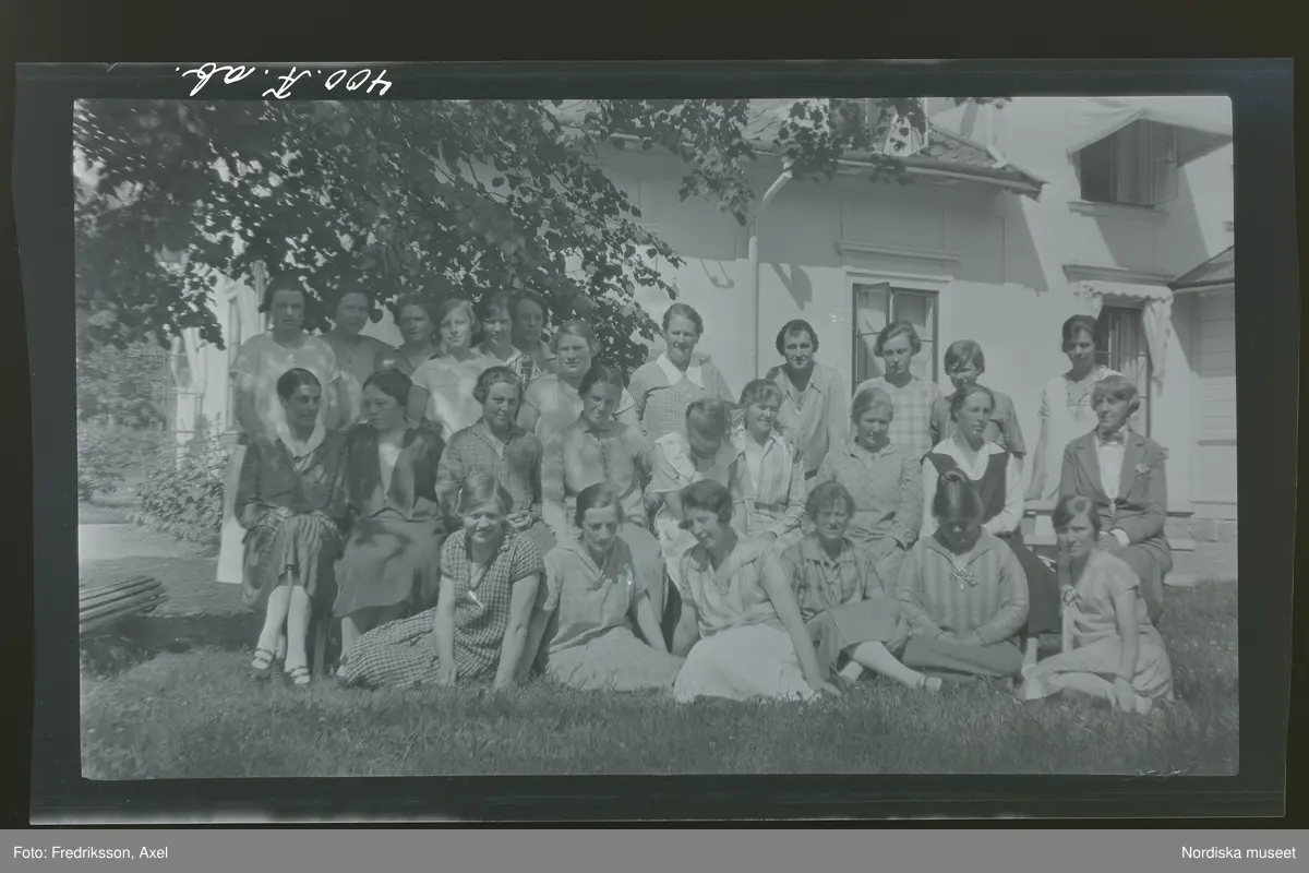 Grupporträtt av kvinnor, fotograferade ute i en trädgård.