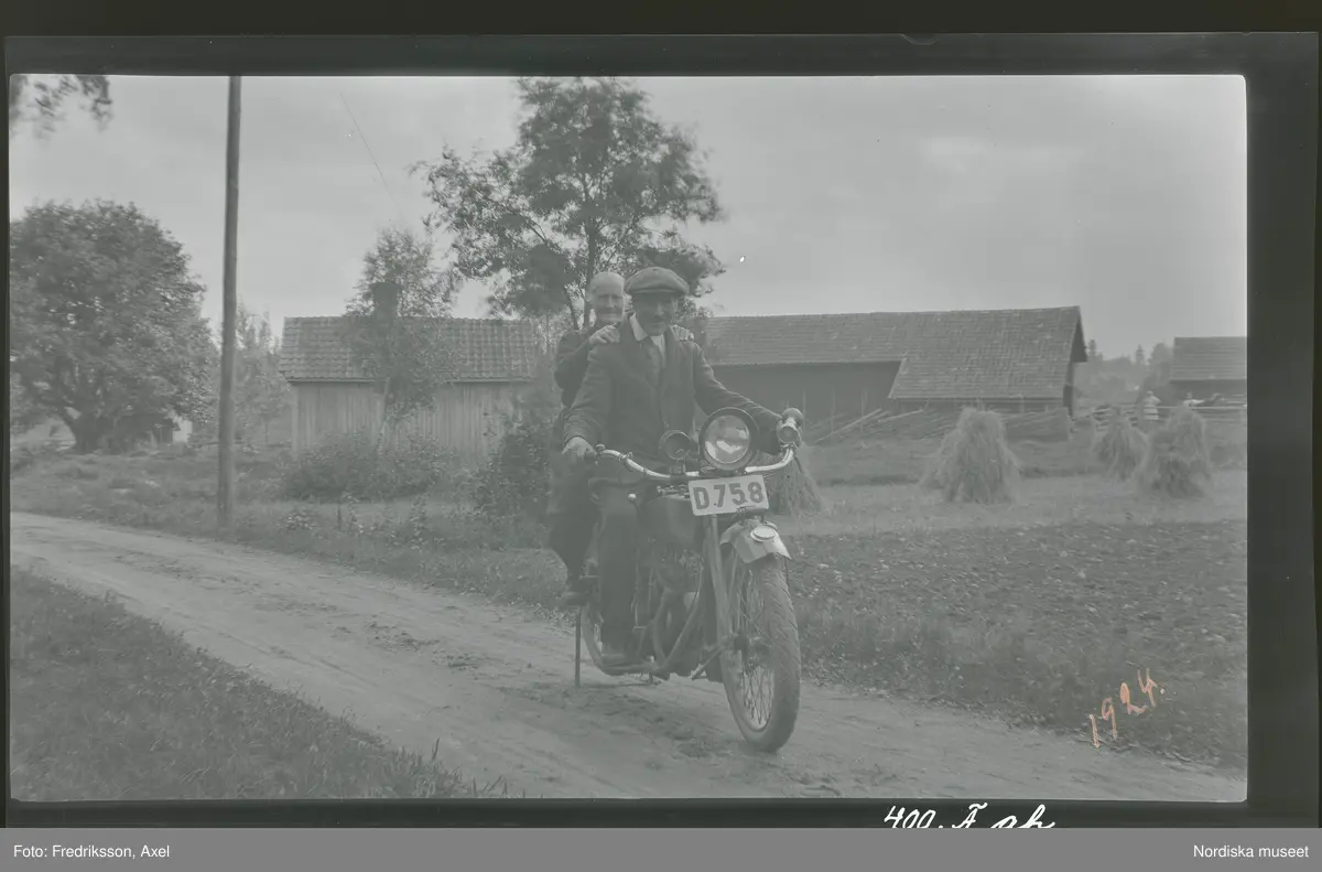"Alma och Karl Johan Hagalund, båda efterblivna på Axels motorcykel, foto 1924."
