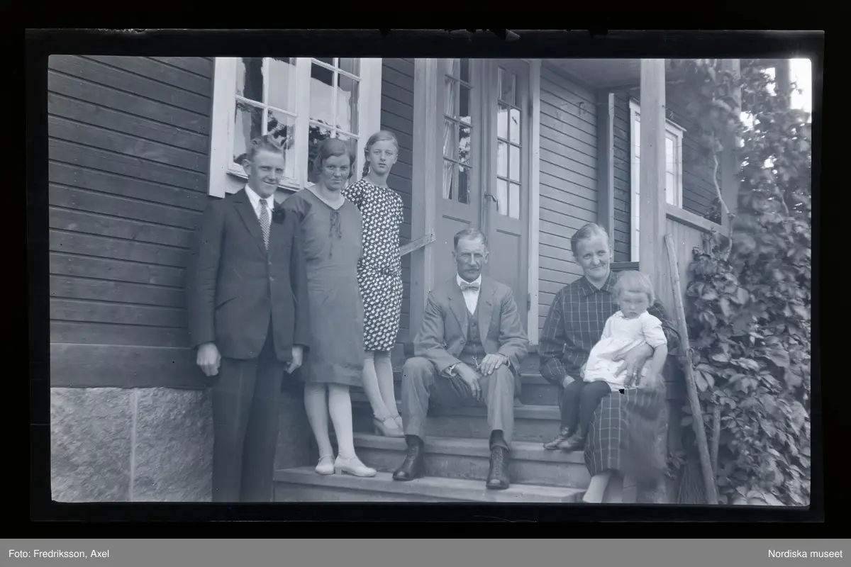 "Hilda och August Karlsson, Fall, Harry, Gerda, Margit. Bondgård."