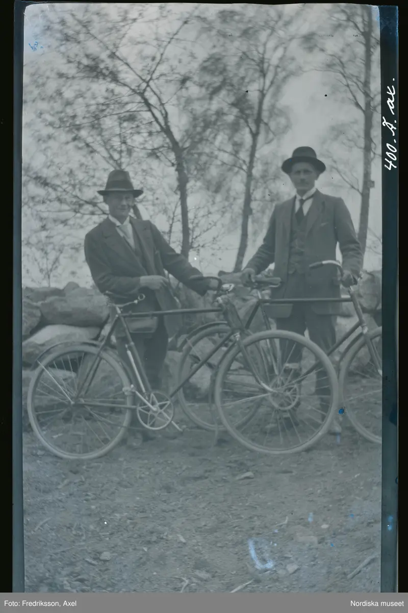 Axel Fredriksson (till höger) och hans bror Ivar, fotograferade vid sina cyklar.