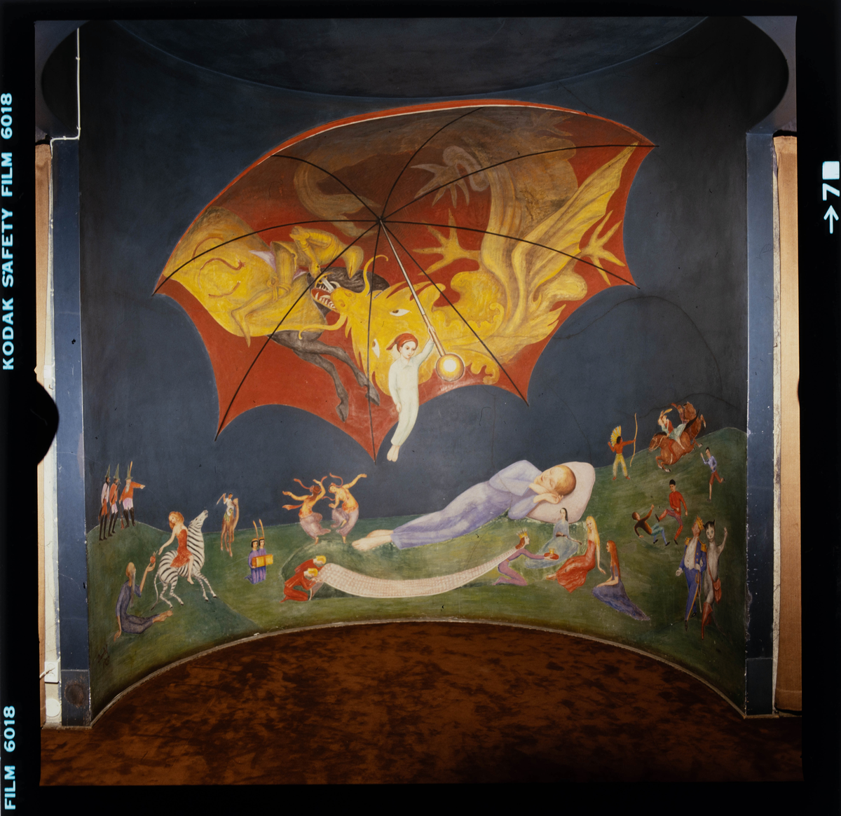 Nils von Dardels freskmålning "John Blund" i Sagorummet på Stockholms stadsbibliotek.