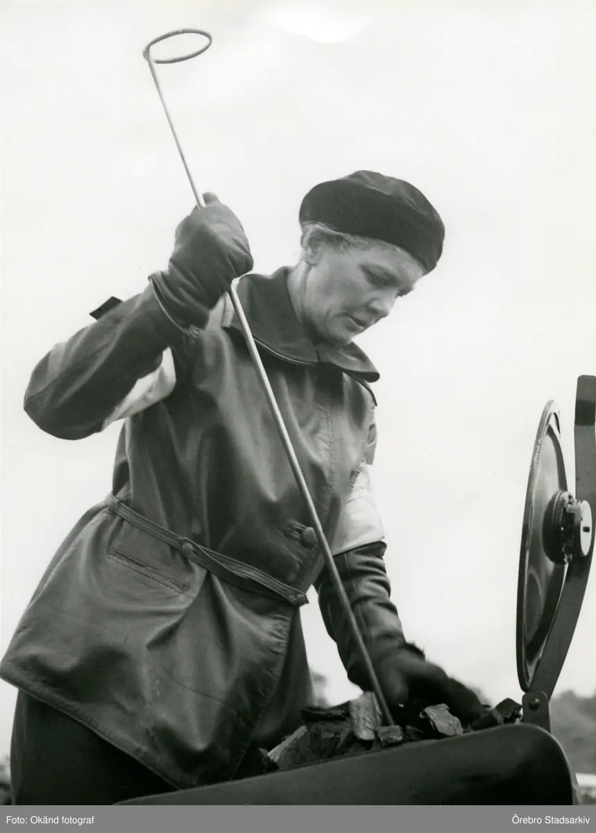 Ebba Gripenstedt fyller på gengasaggregat, ca 1942