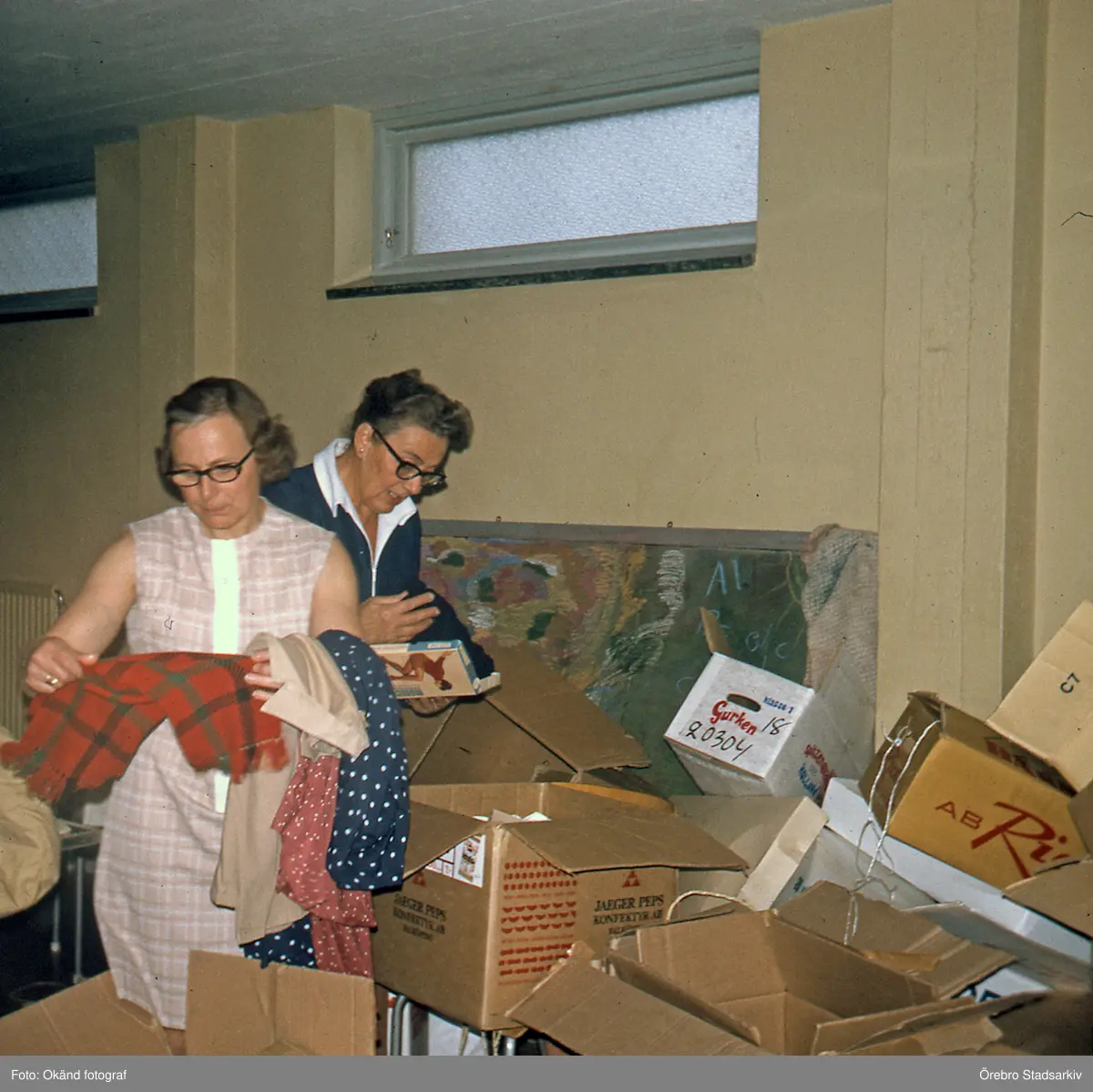 Packning av kläder till Röda korsets hjälpsändning, 1970