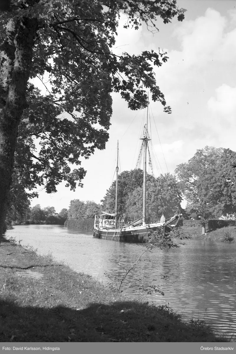 Båten Herman Goteborg utmed hjälmare kanal, 1930-tal