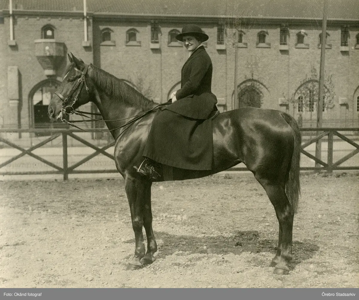 Anna Gripenstedt till häst på Stockholms stadion, ca 1920
