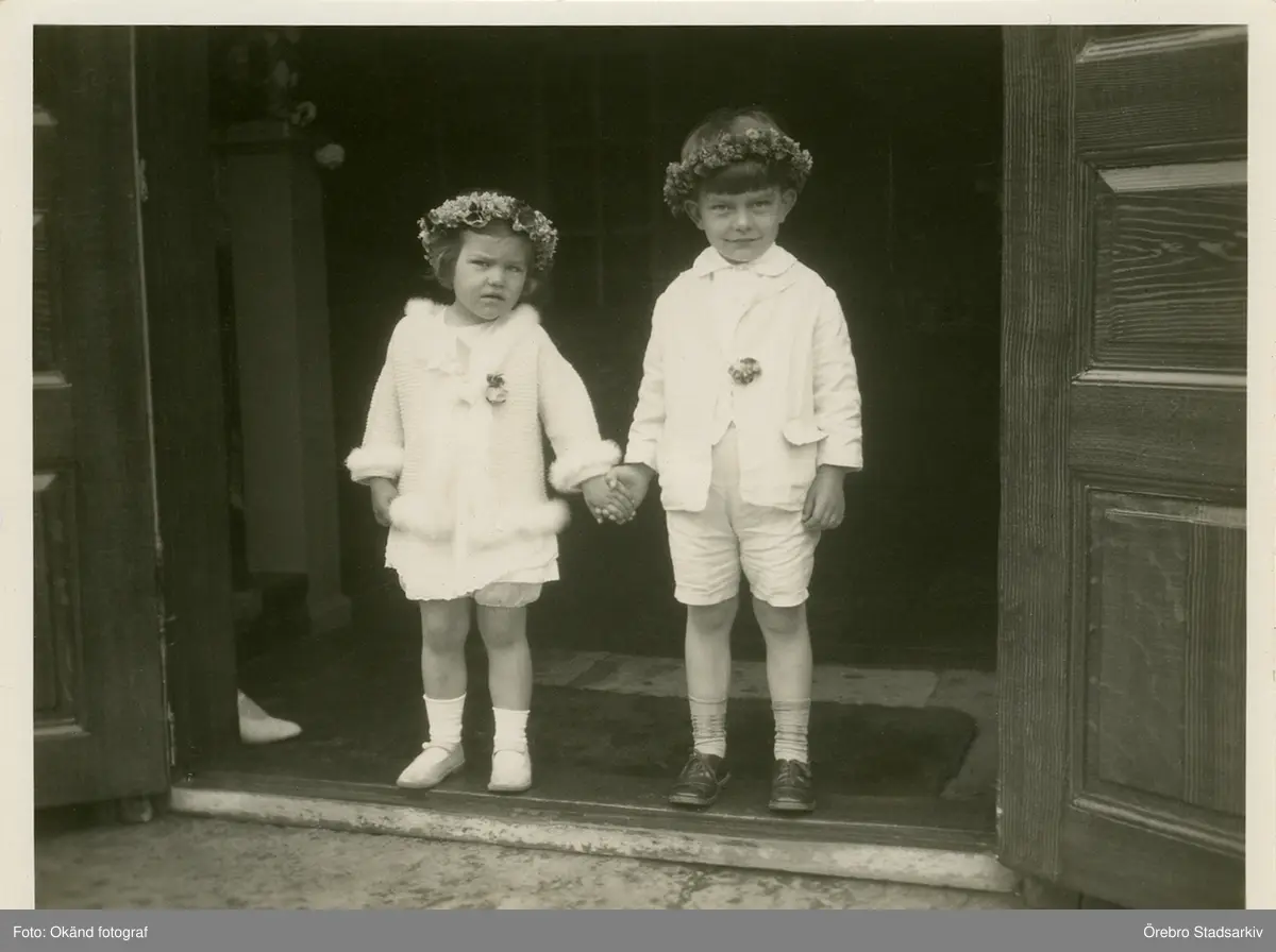 Syskonen Mary och Johan Gripenstedt hand i hand, 1928