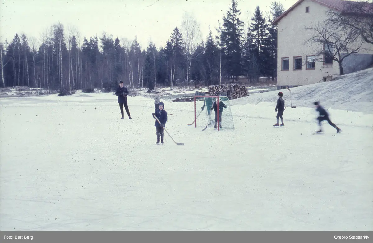 Barn spelar ishockey vid Lillåns skola, 1960-tal