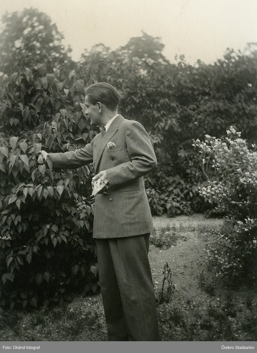 Johan Gripenstedt i trädgården vid Nynäs slott, 1940-tal