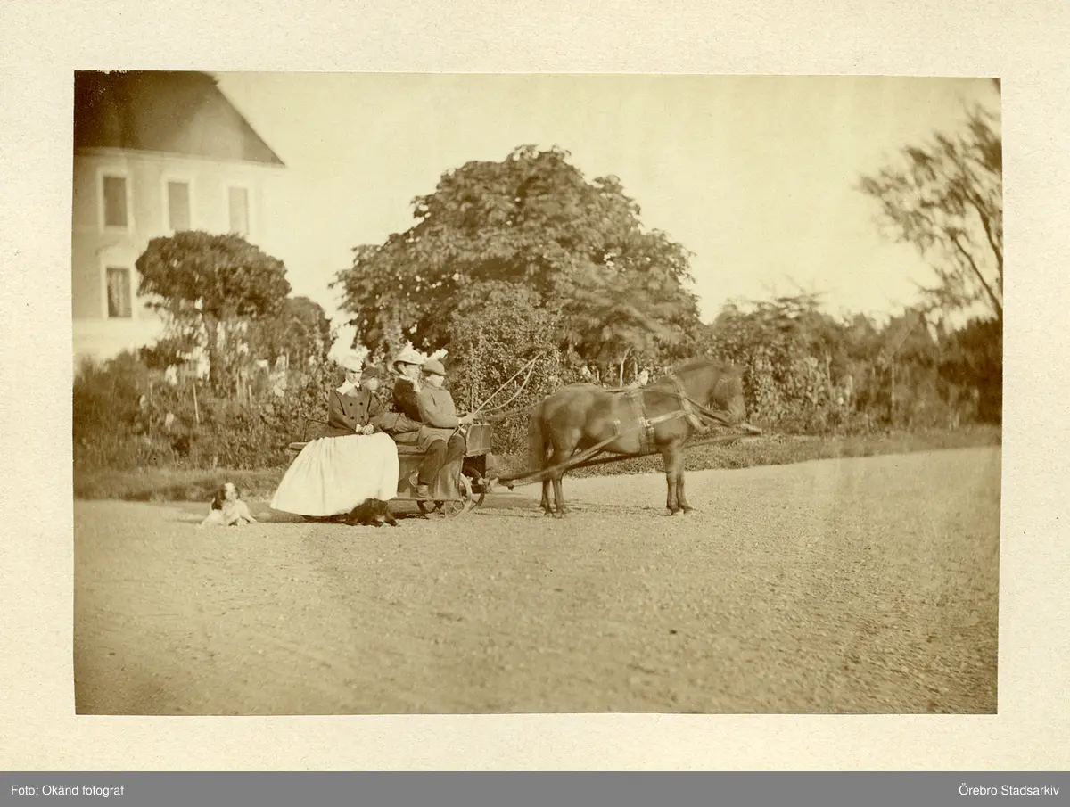 Carl Gustaf Gripenstedt håller hästens tömmar med systern Sofie i vagnen vid Nynäs slott, 1869