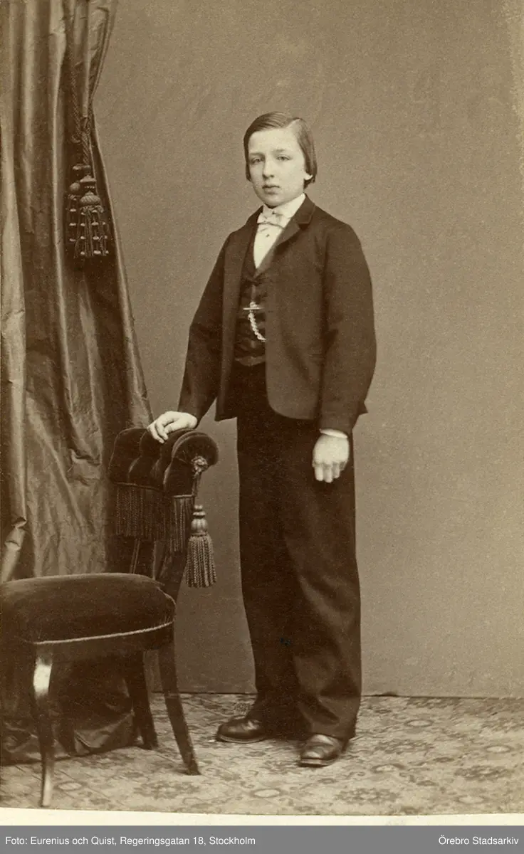 Porträtt av unge Carl G. Gripenstedt i kostym, 1868
