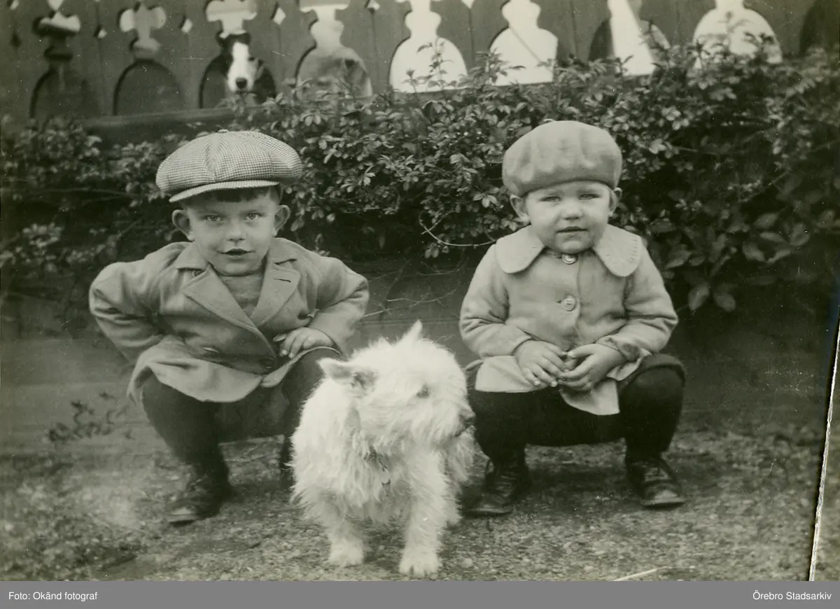 Syskonen Johan och Mary Gripenstedt samt terrier, ca 1928