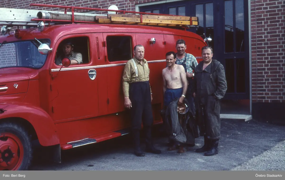 Brandmännen i Lillåns brandkår framför brandbilen, 1960-tal