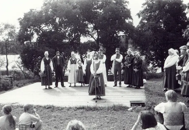 Hantverksdagar i Rönninge by i Täby. 28 aug 1987 med folkdräktsparad.