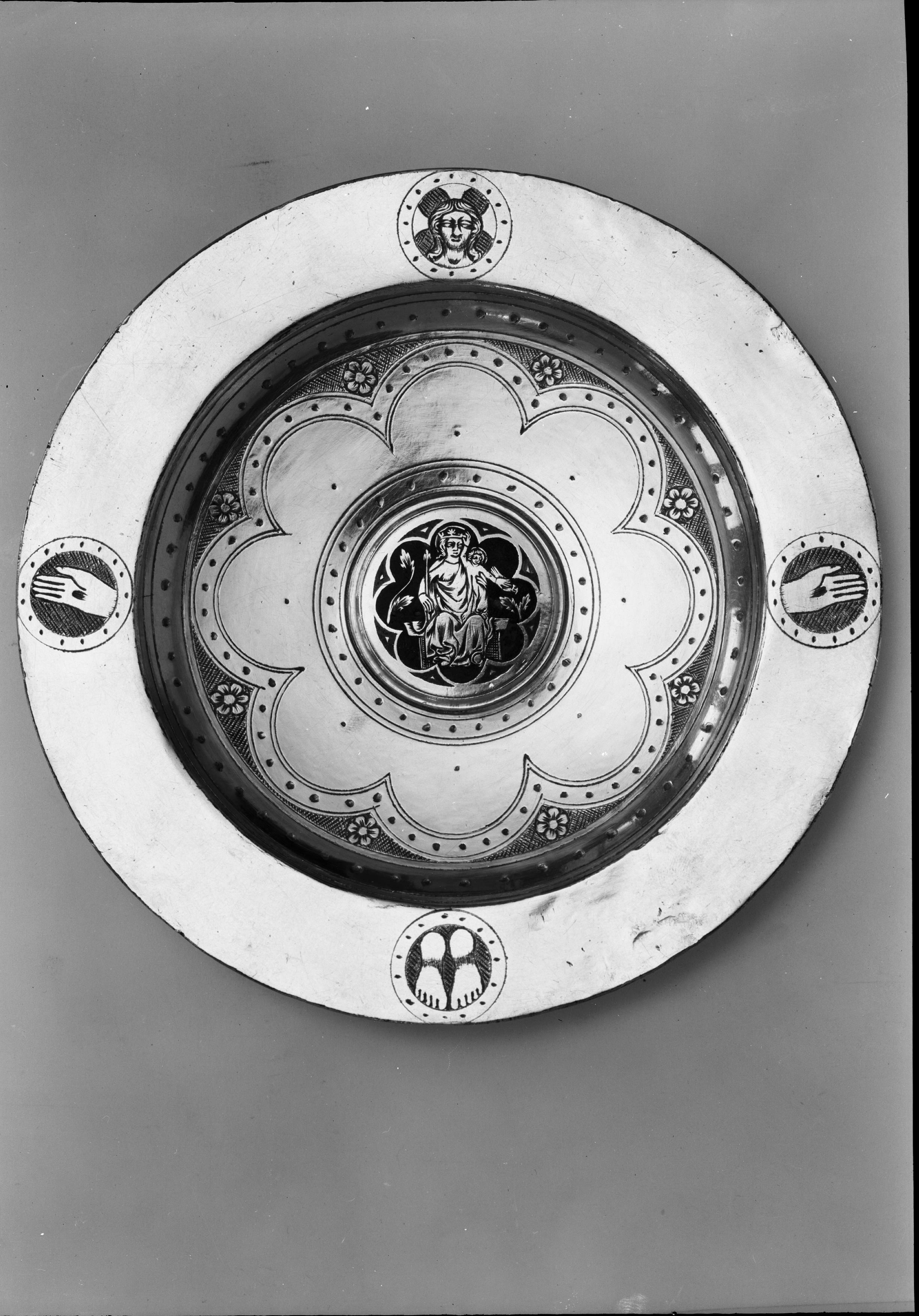 Paten av förgyllt silver med emaljinläggningar, 1300-talet.