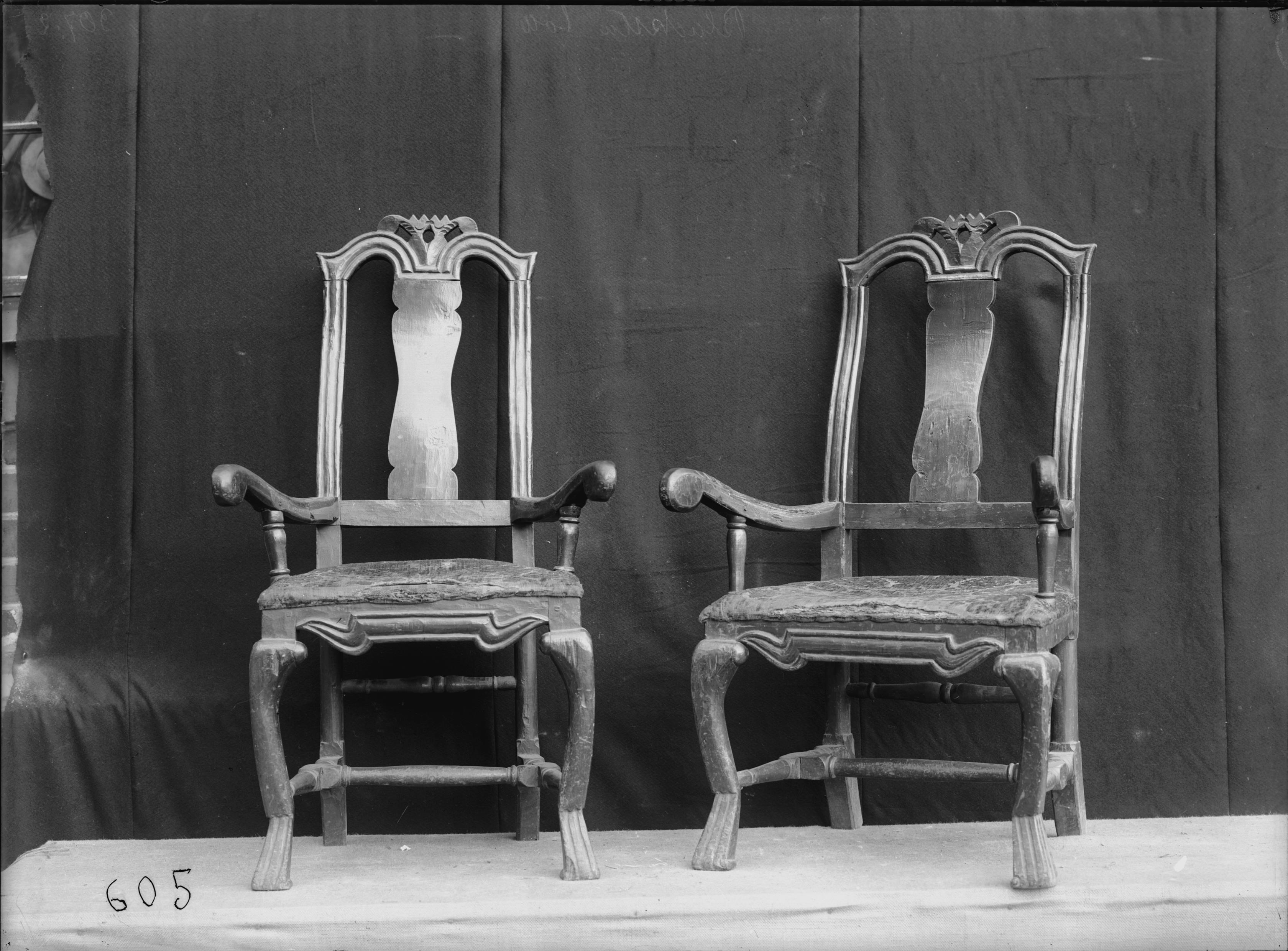 Stolar, ett par, stoppad sits, 1700-talets början.