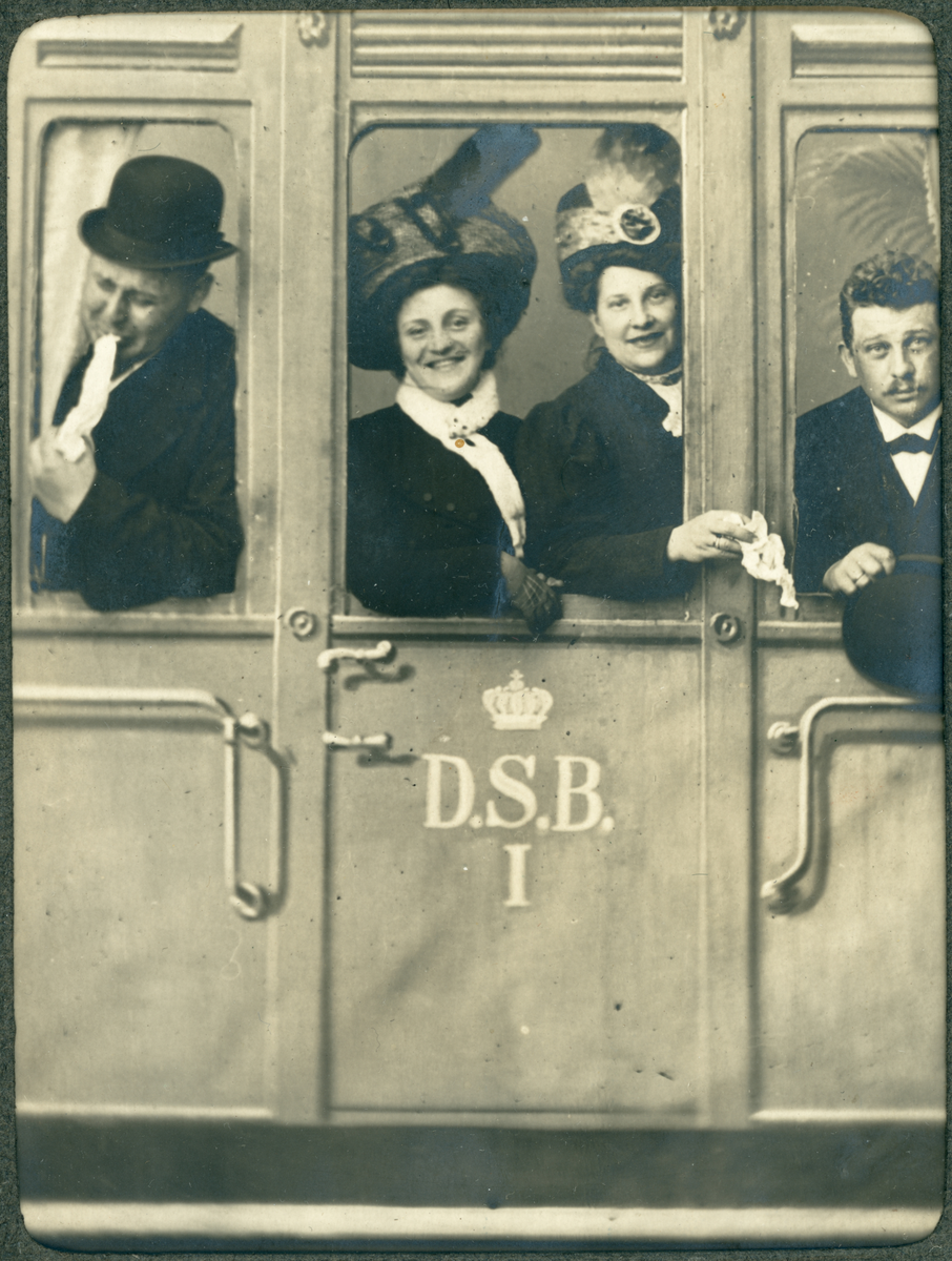 Sällskap i tågvagn. Danska järnvägsföretaget D.S.B Danske Statsbaner