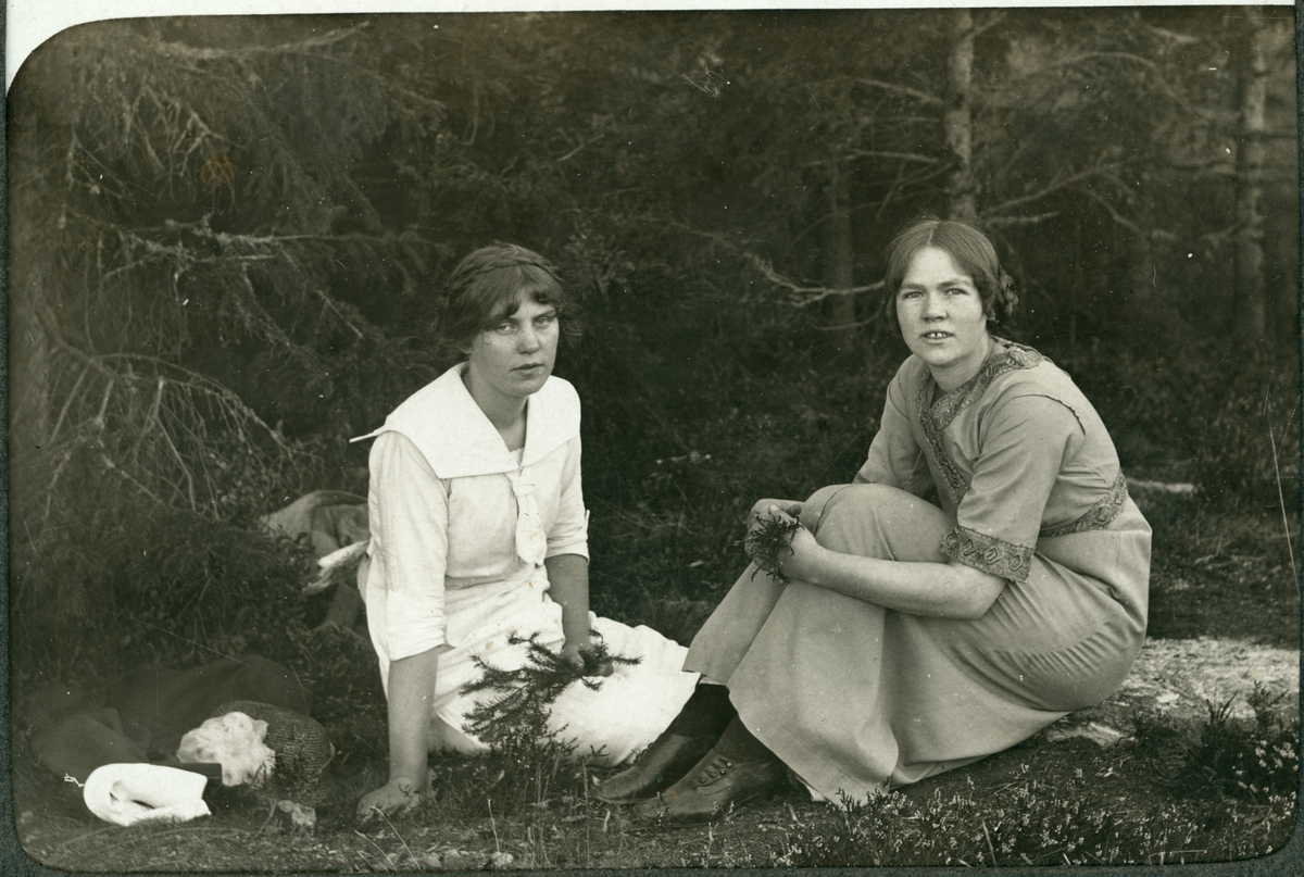 Två kvinnor. Ser ut som att de håller i revor av lummer