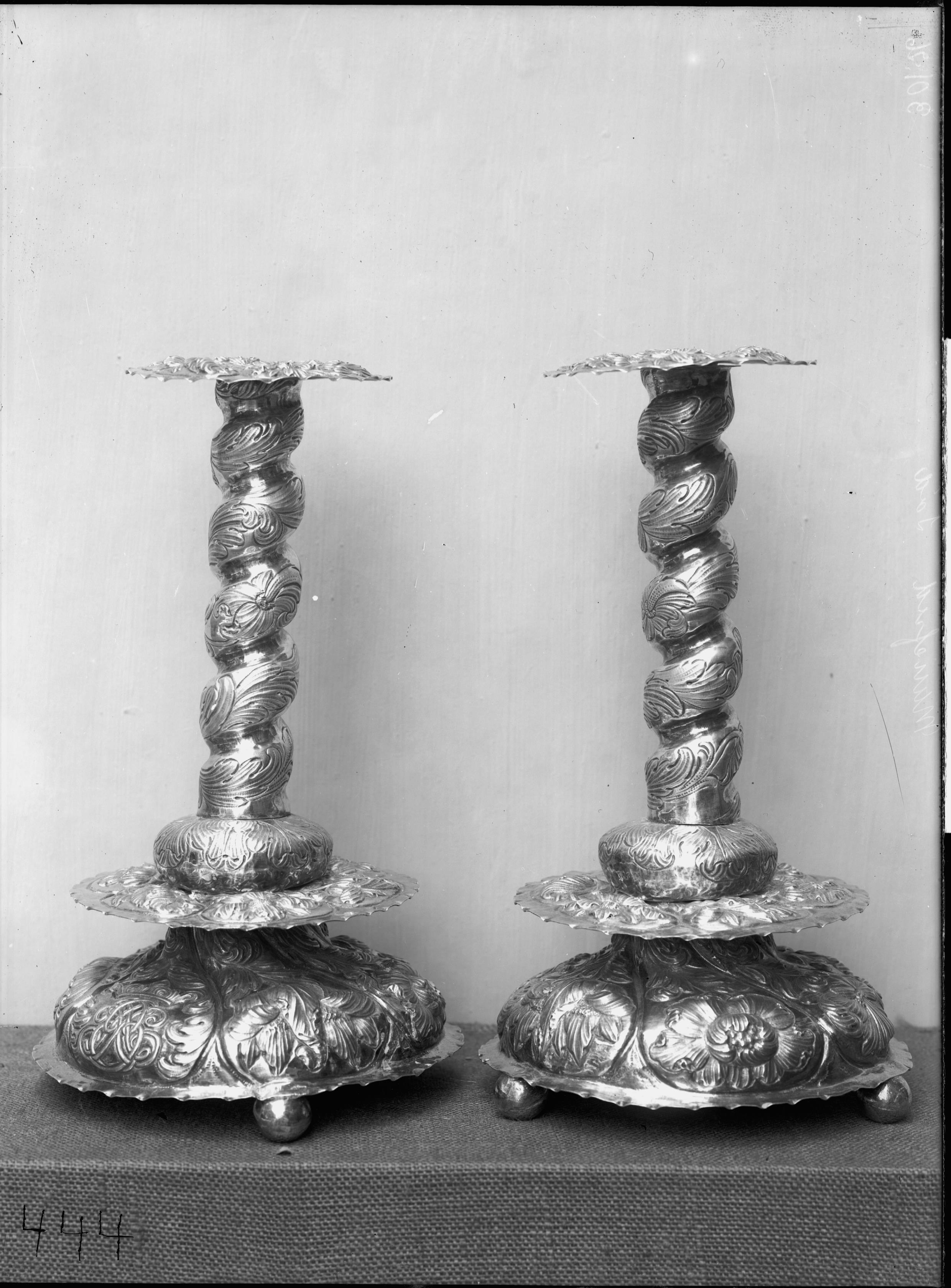 Ljustkar, ett par, av pläter. Omkring 1700.