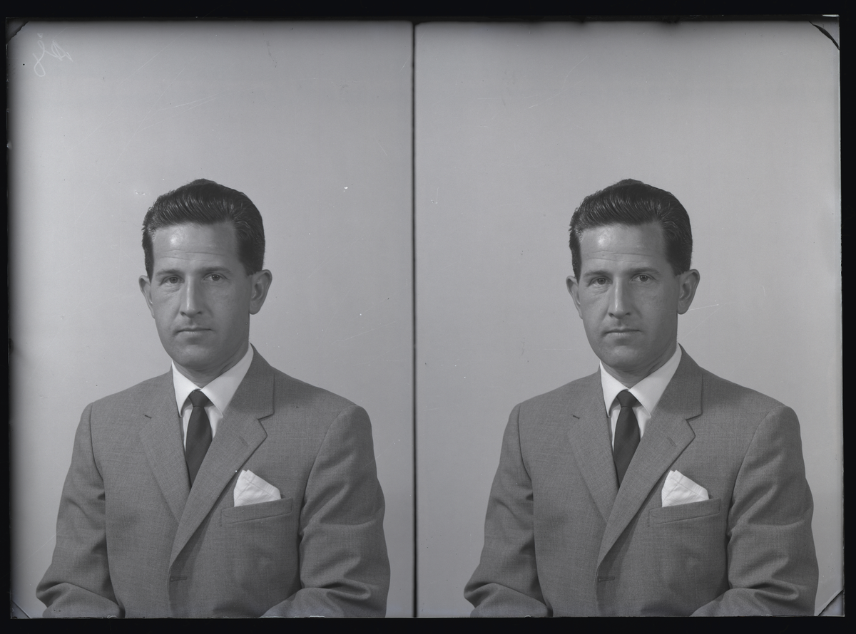 Porträtt, passfoto. Stig Larsson, RIngvägen. Kolbäck. Ur Gustaf Åhmans samling.
