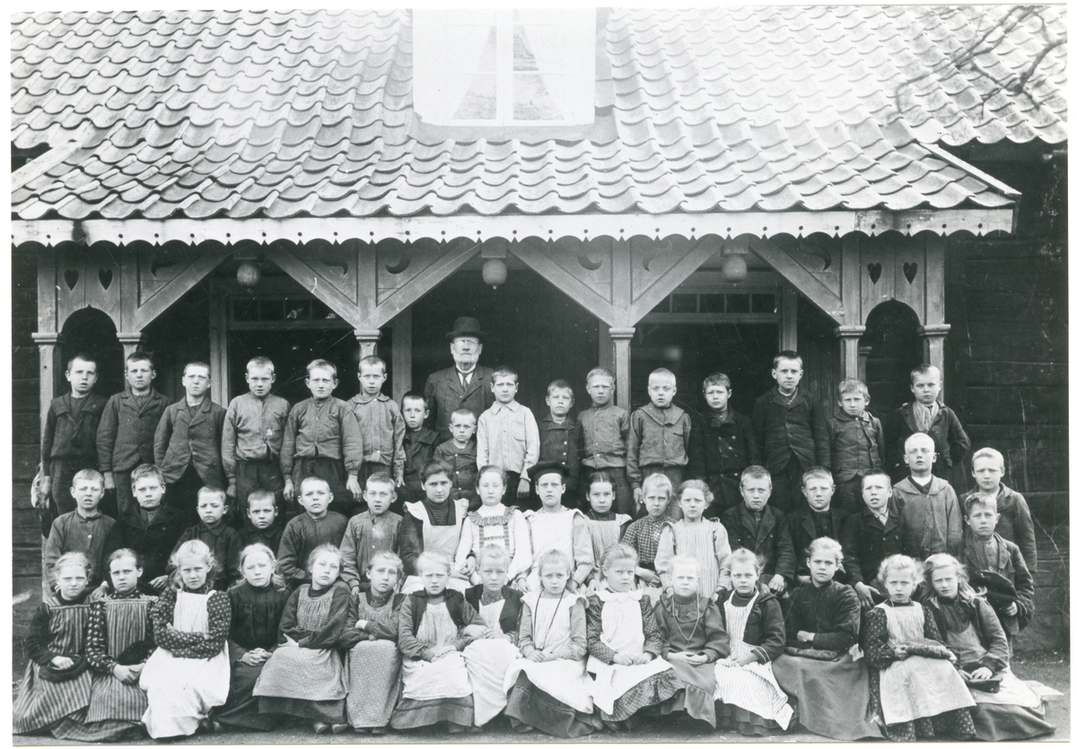 Skolklass framför Kungsörs Gamla skola, c:a 1900.