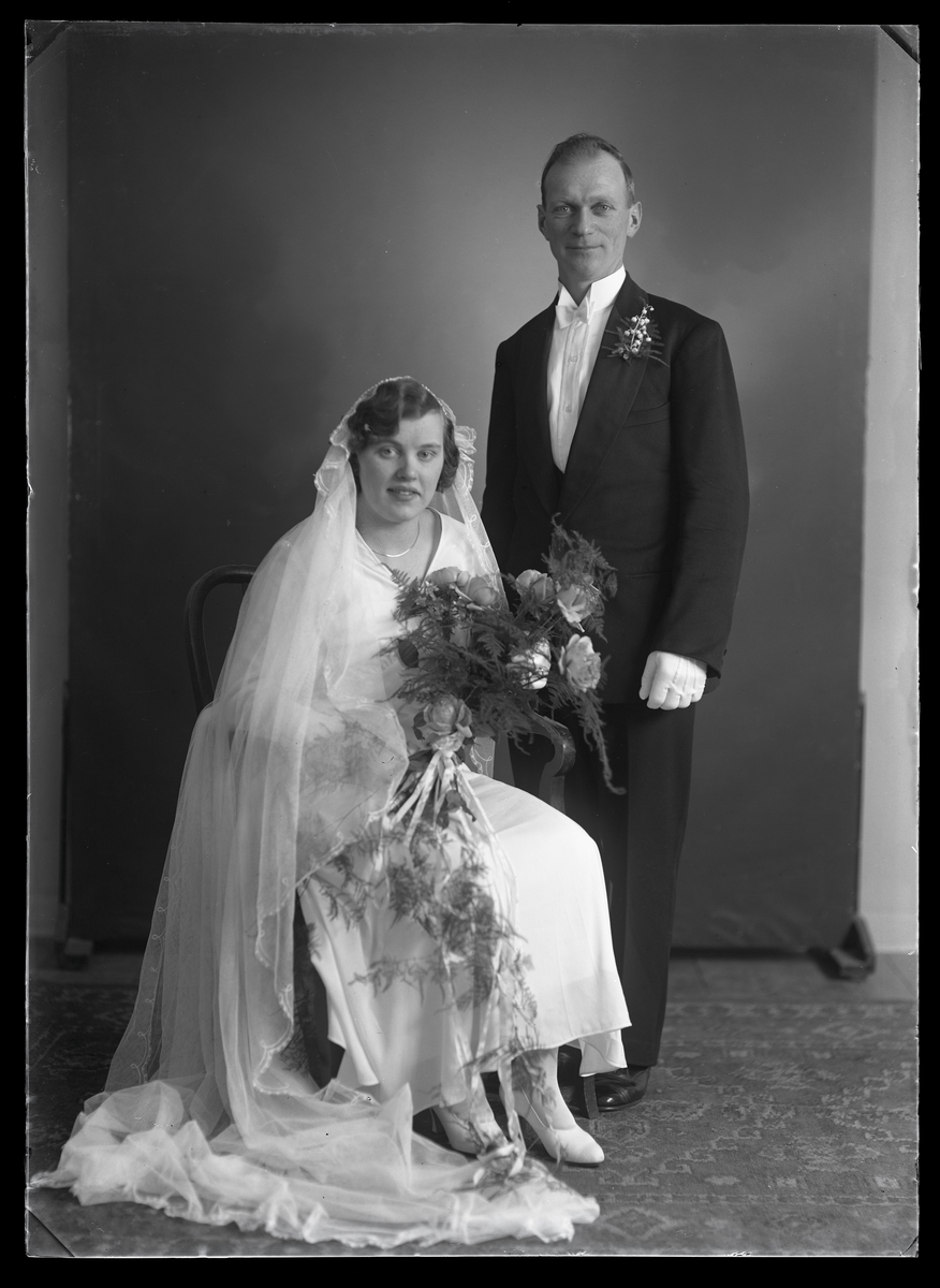 Titel: Brudpar. Elis Larsson, Svenby, Berg. Ur Gustaf Åhmans samling.