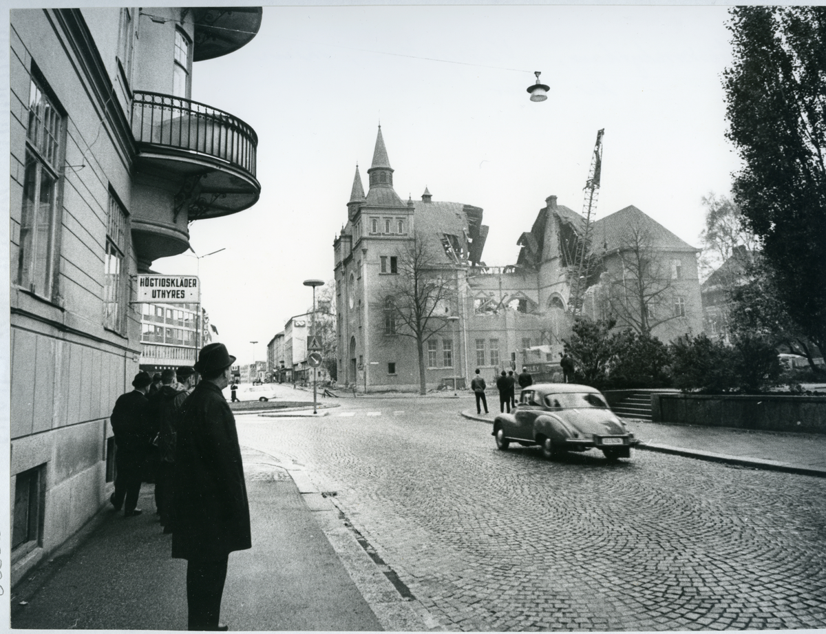 Missionskyrkans rivning, vid korsningen Vasagatan/Engelbrektsplan, 1967.