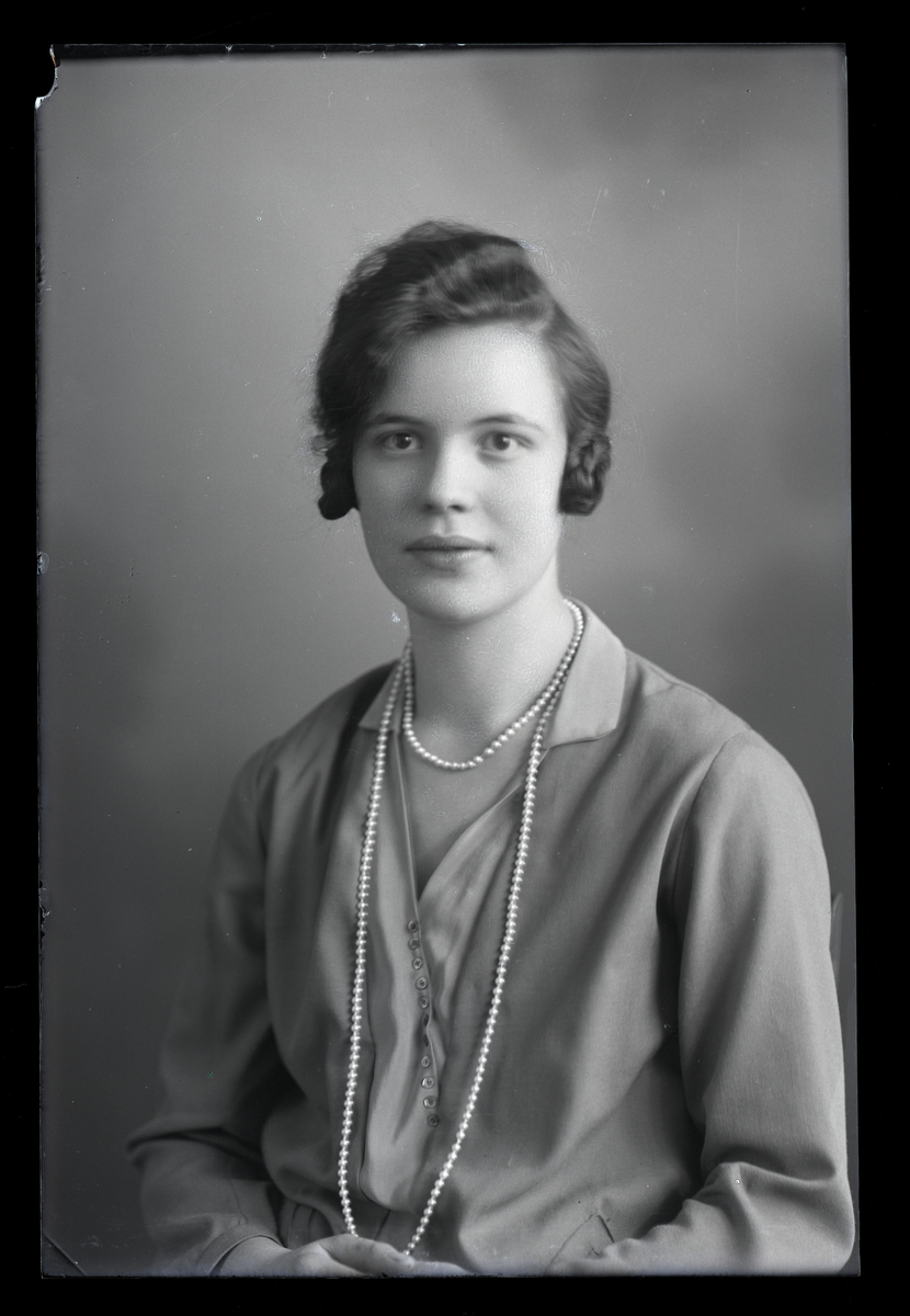 Kvinnoporträtt, Iris Eriksson, Tomtebo 82, Hallstahammar, Tel 33.