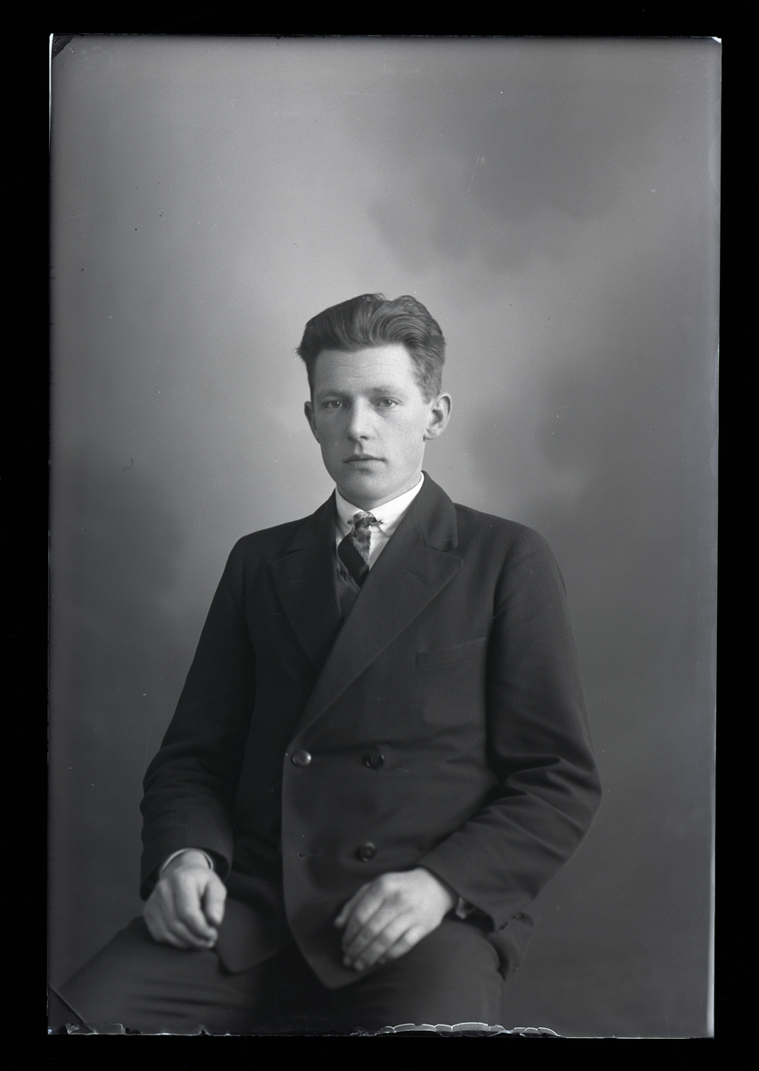 Titel: Mansporträtt, körkort, Ragnar Norman, Tuna, Hallstahammar. Ur Gustaf Åhmans samling.