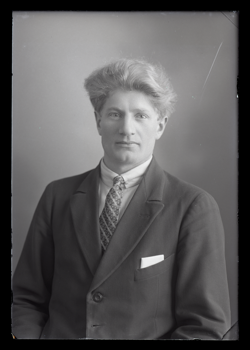 Titel: Mansporträtt, Erik Larsson, Vallby, Säby, Kolbäck. Ur Gustaf Åhmans samling.