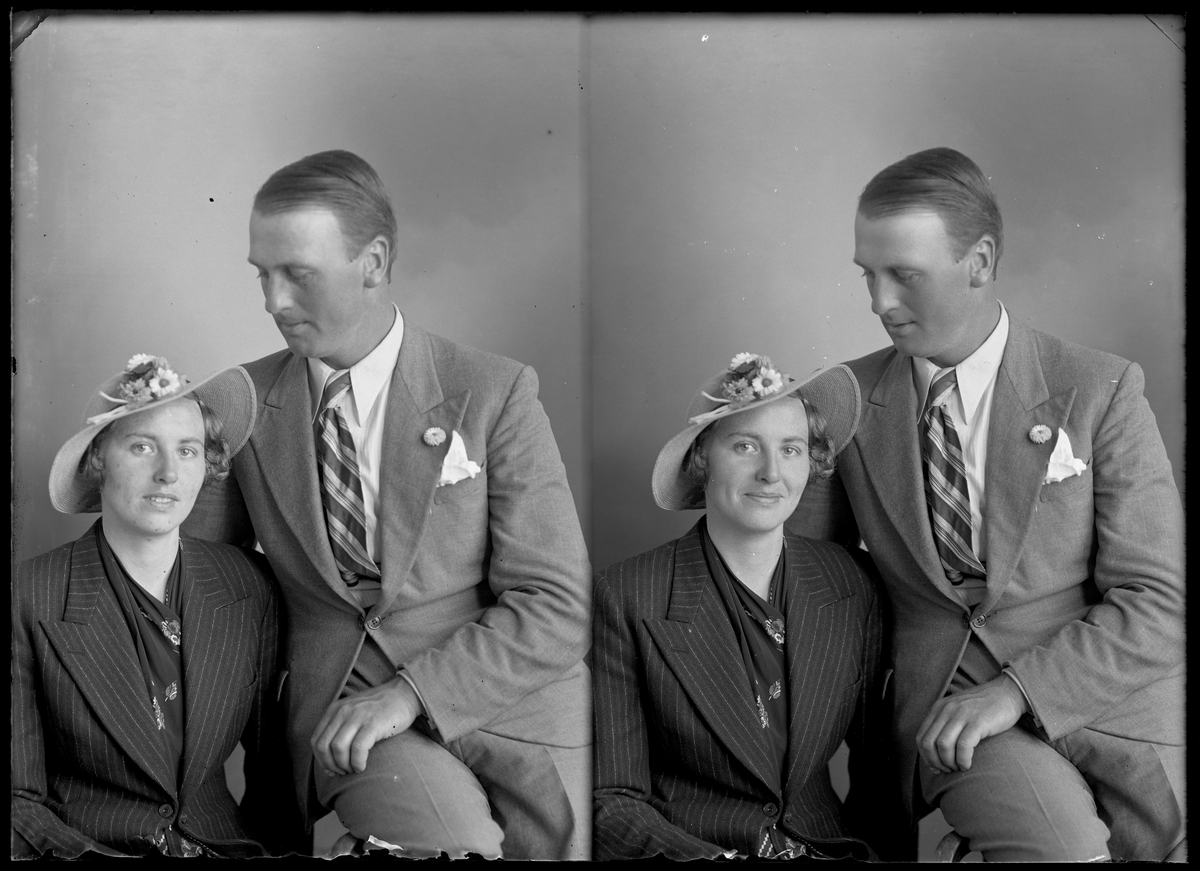 Grupporträtt, två personer. Ivar Hedlund, Hallstahammar.