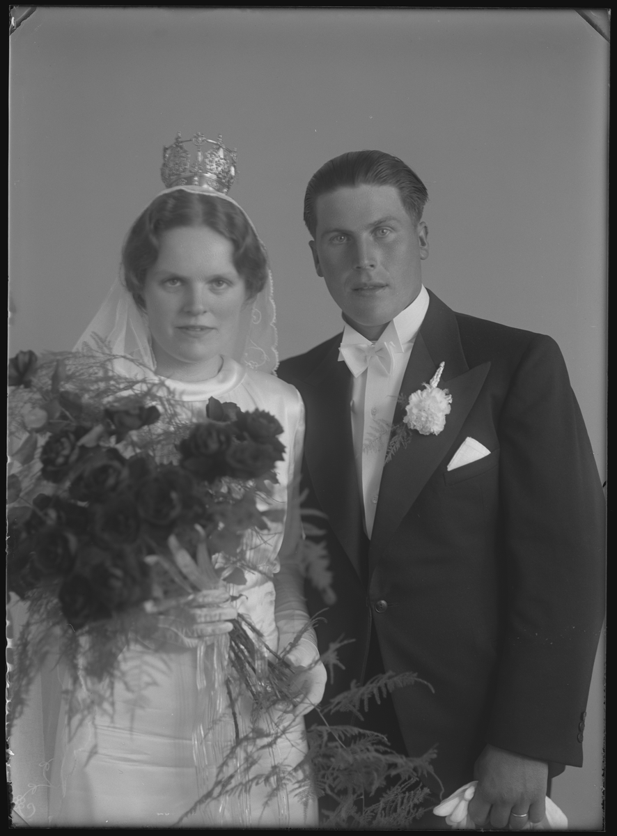 Bröllopsporträtt. Brudpar. Olsson. Ur Gustaf Åhmans samling.