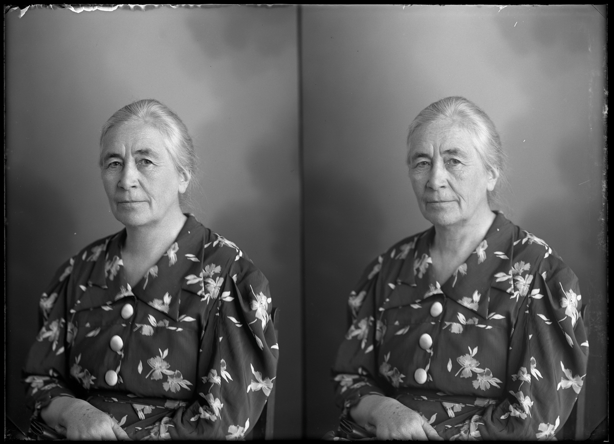 Kvinnoporträtt, passfoto. Fröken Sara Vennström, Kolbäck.