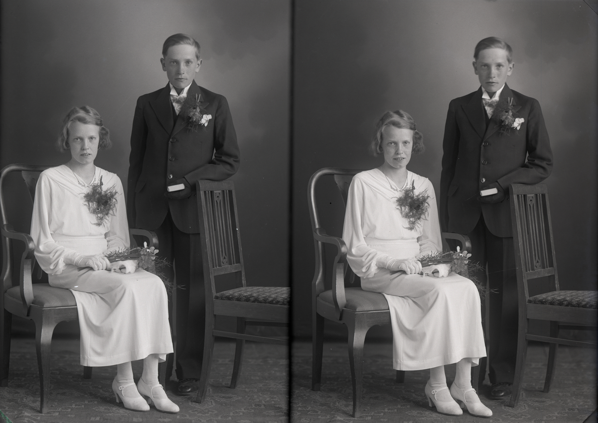 Grupporträtt. Gert och Ejlis Pettersson. Kom.gården. Kolbäck.