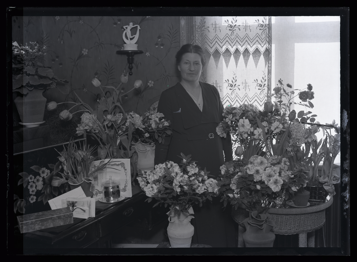Kvinnoporträtt, 50-års foto. Fru Hilma Karlsson, Konsum, Tuna, Hallstahammar.
