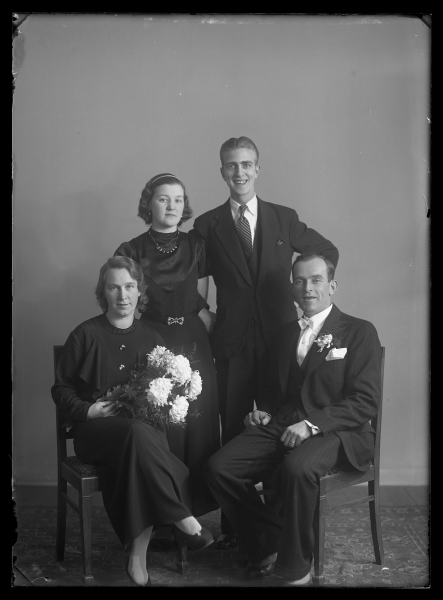 Grupporträtt, Brudpar, J. G. Hedström, Tomtebo 38, Hallstahammar.