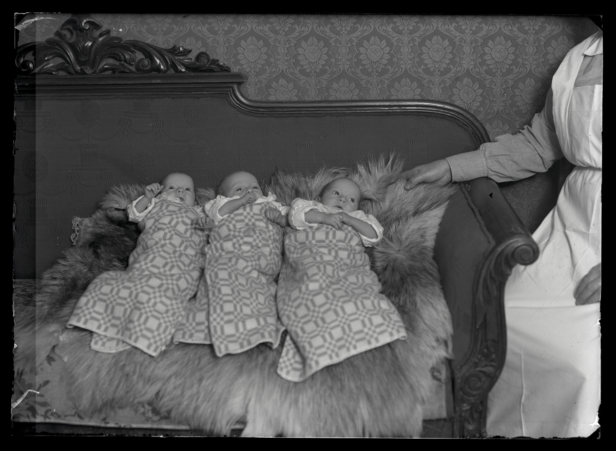 Grupporträtt, trillingar, Gösta Norr, Vänsta, Kolbäck.