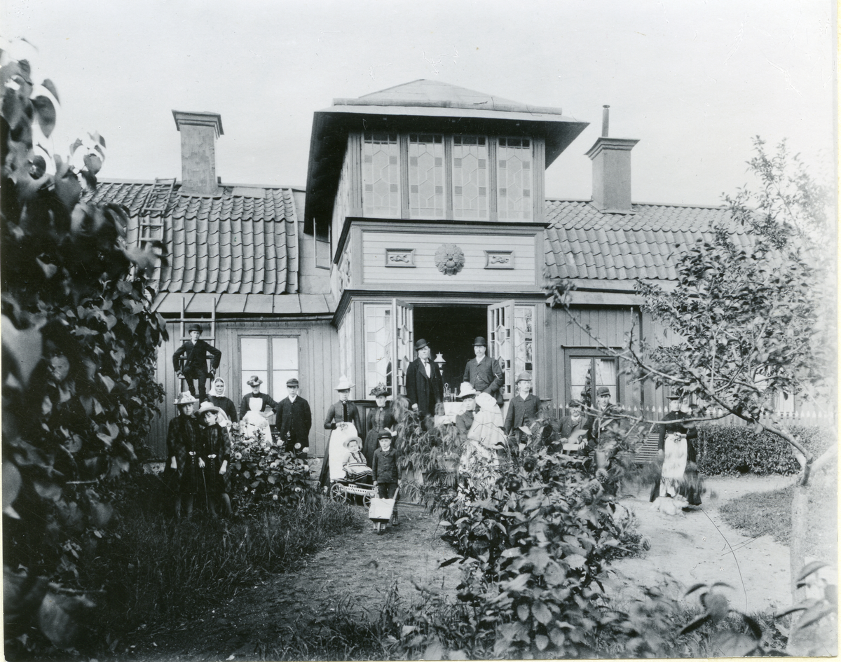 Folk uppställda för fotografering utanför Tenngjutargården.