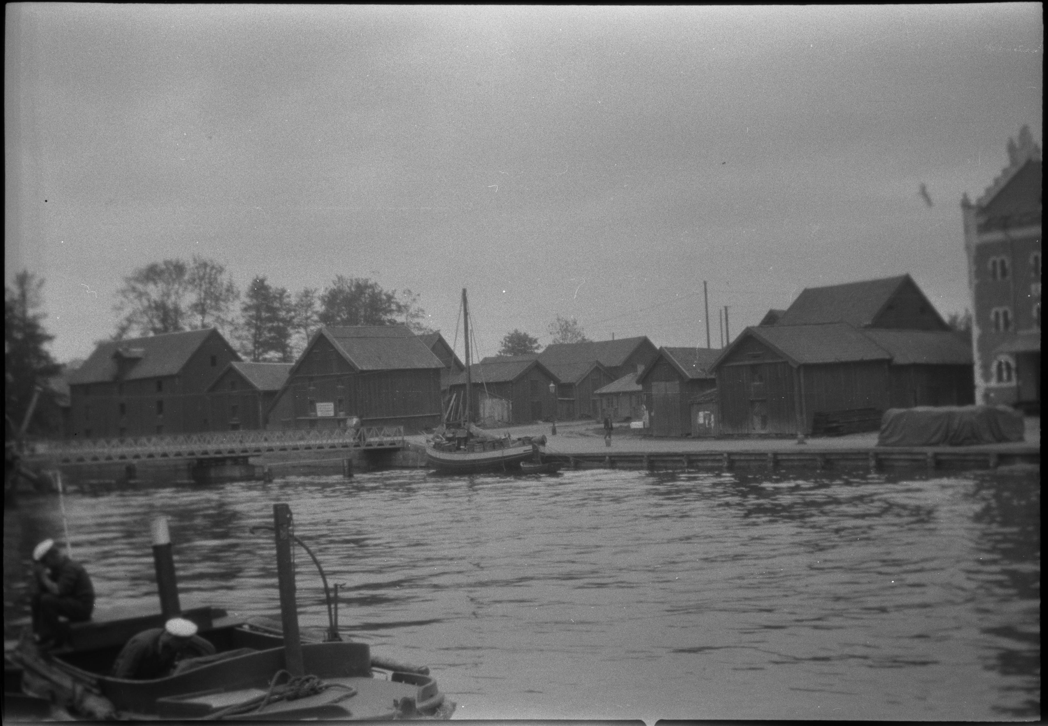 Nyköpings hamn med bodar.