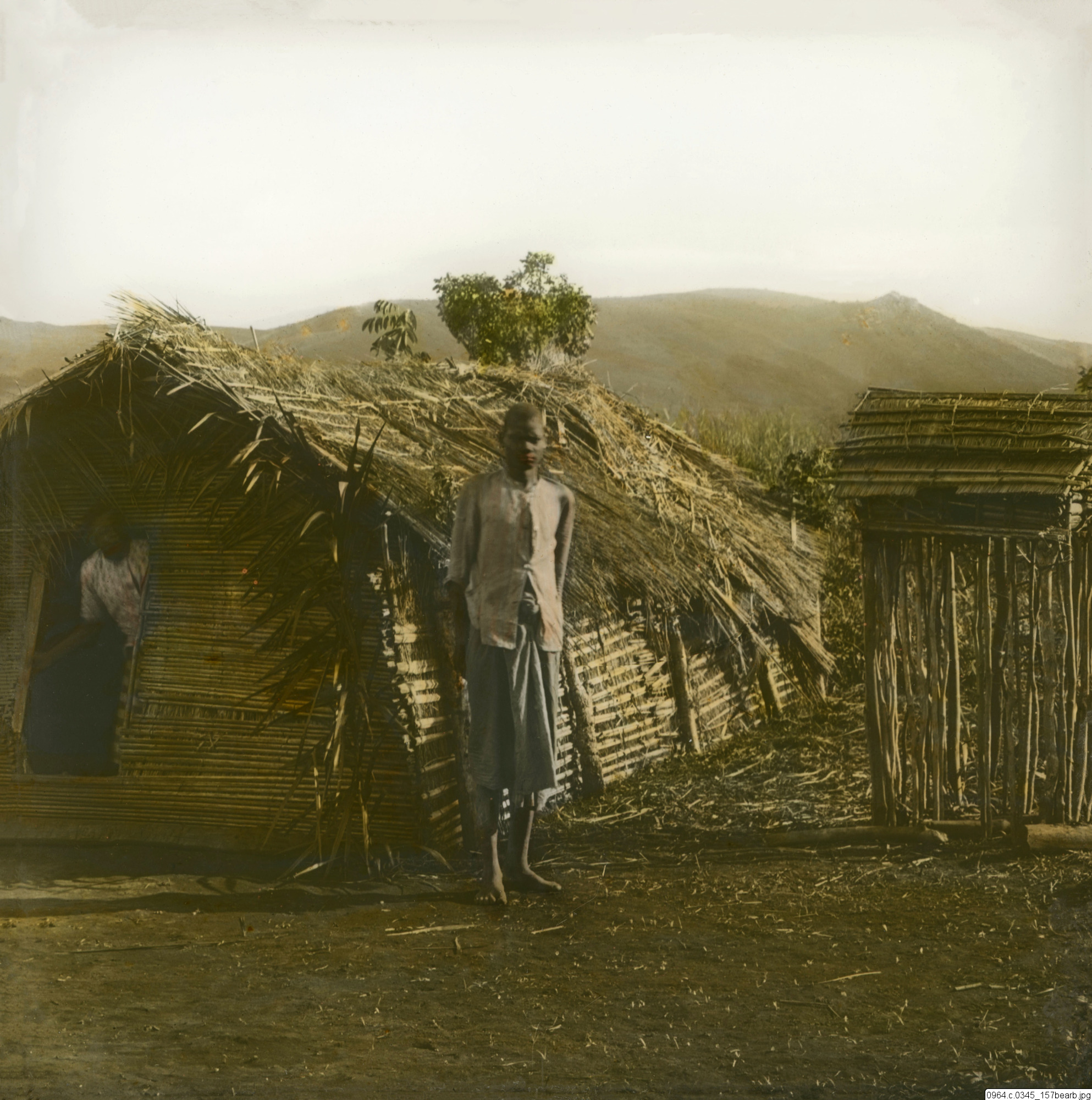 Man utanför hydda.