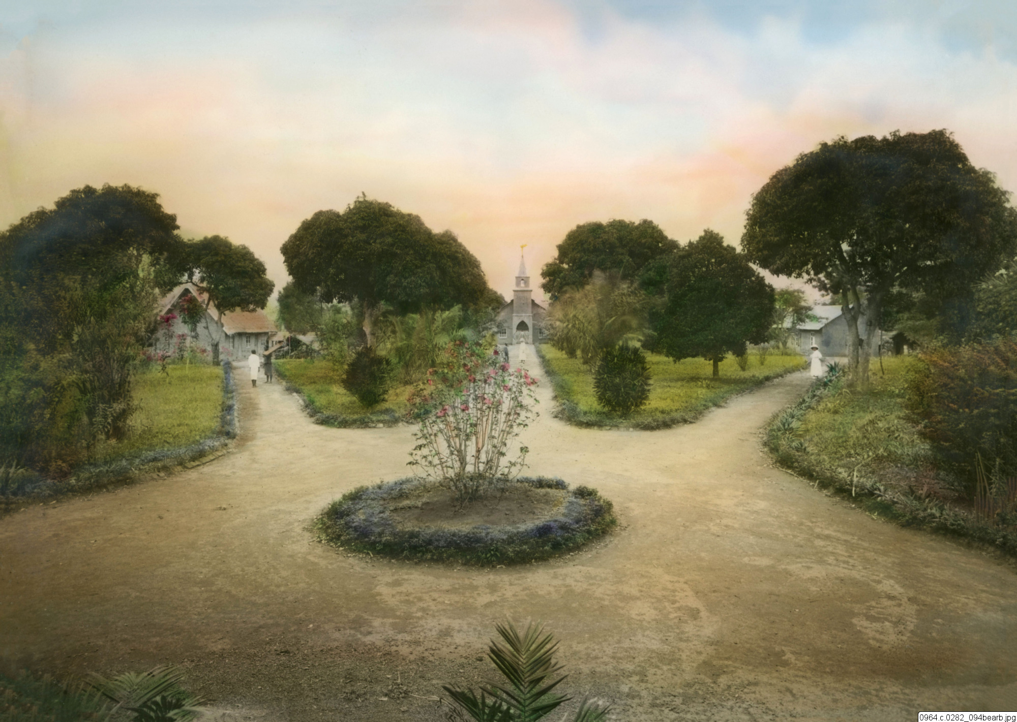 Kibunzi missionsstation, vy, tre sammanlöpande gångar.