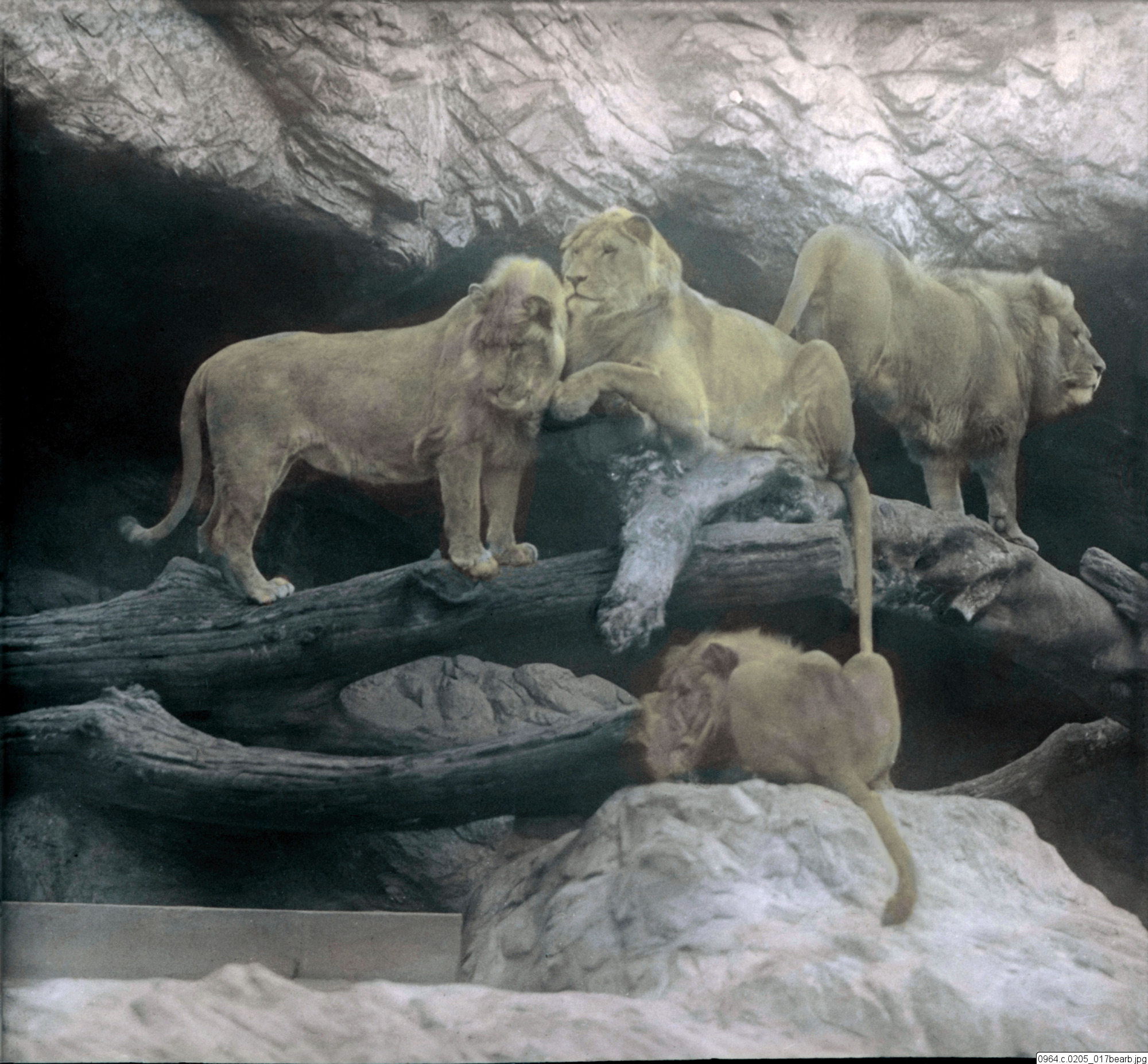 Fyra lejon (felis) i Zoo Leopoldville. Se även bild 0964.4544.