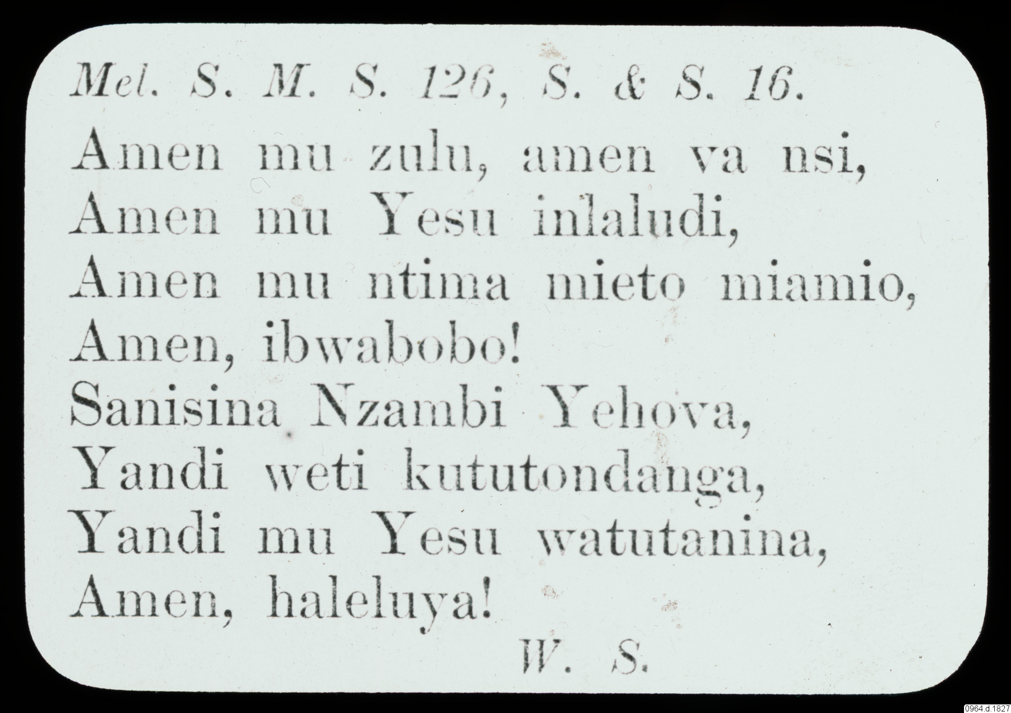 312. Amen, mu zulu, amen va nsi...Psalm på kikongo?, av W.S.