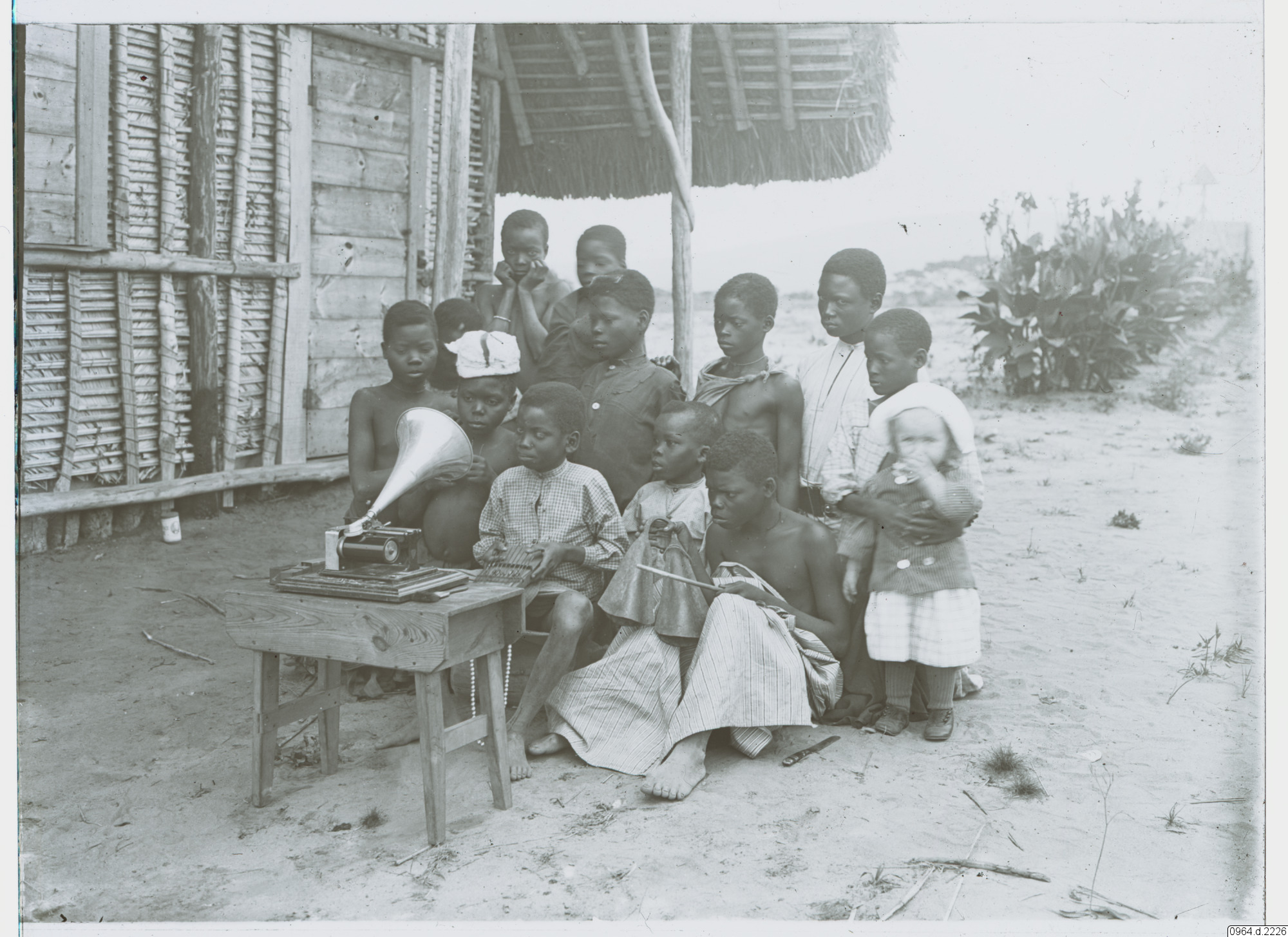 grammofon, missionärsbarn, bord, byggnad, barn, gruppfoto, fotografi, photograph