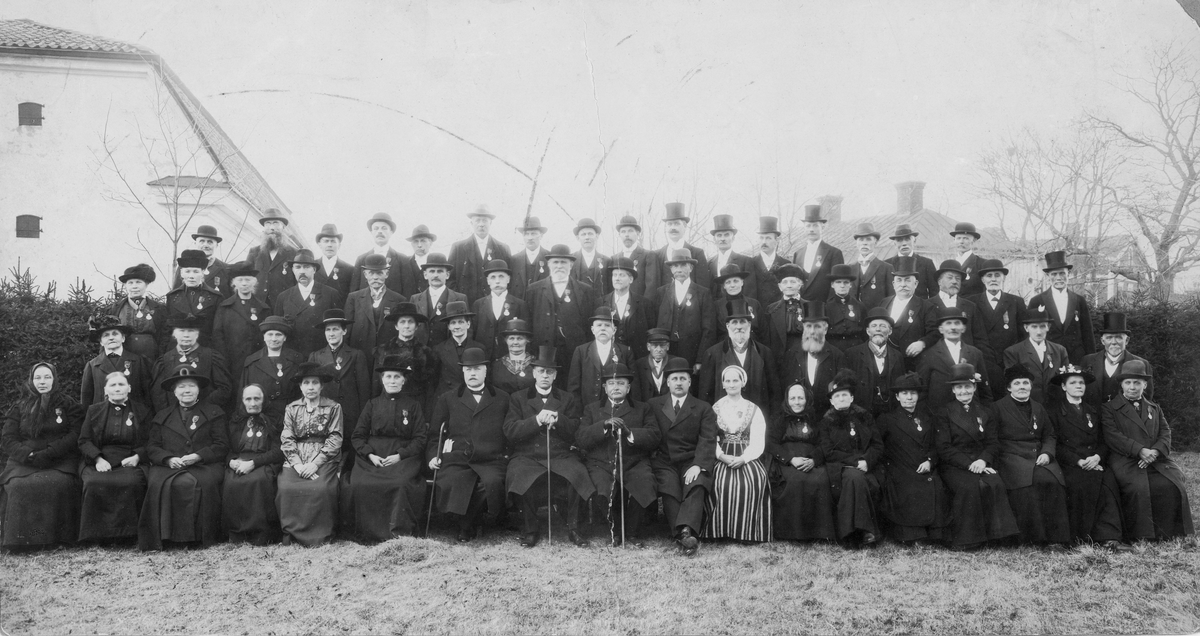 Personalen vid Gefle Manufaktur AB i Strömsbro. Givarens mormorsmor Johanna Wickström sitter till vänster om kvinnan i randig kjol.