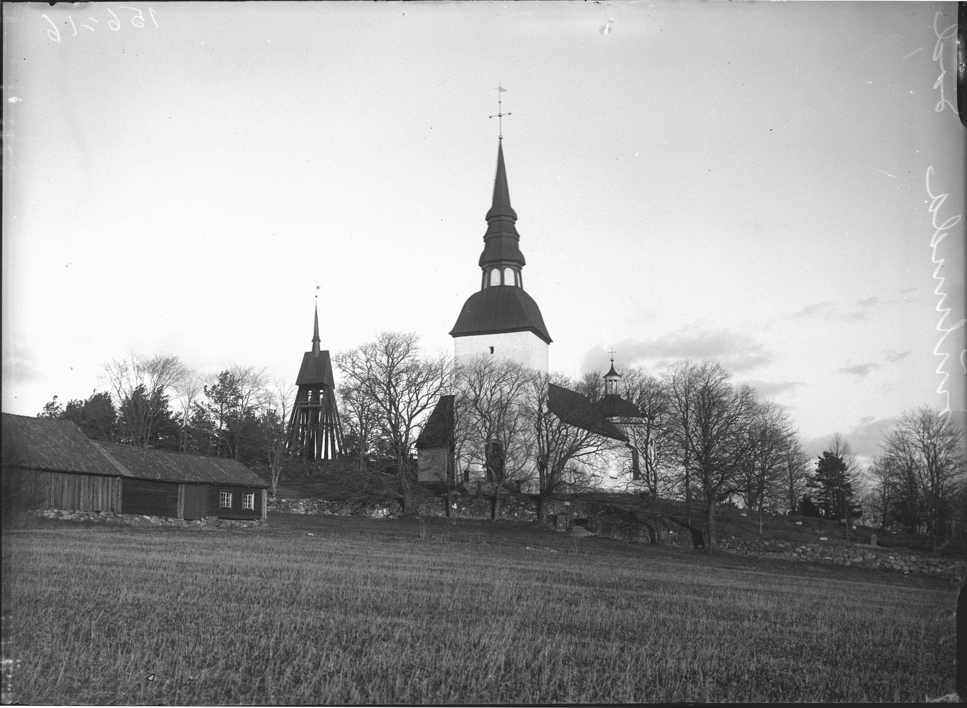 Kyrkan och dess omgivning mot väster.