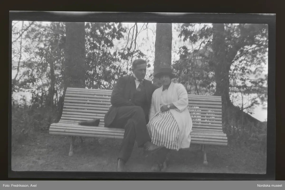 Makarna Fredriksson sitter tillsammans på en parkbänk.